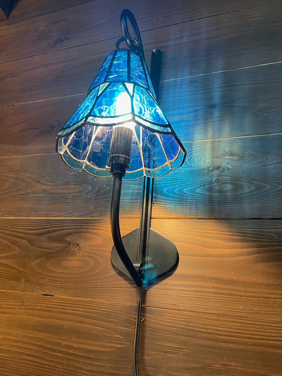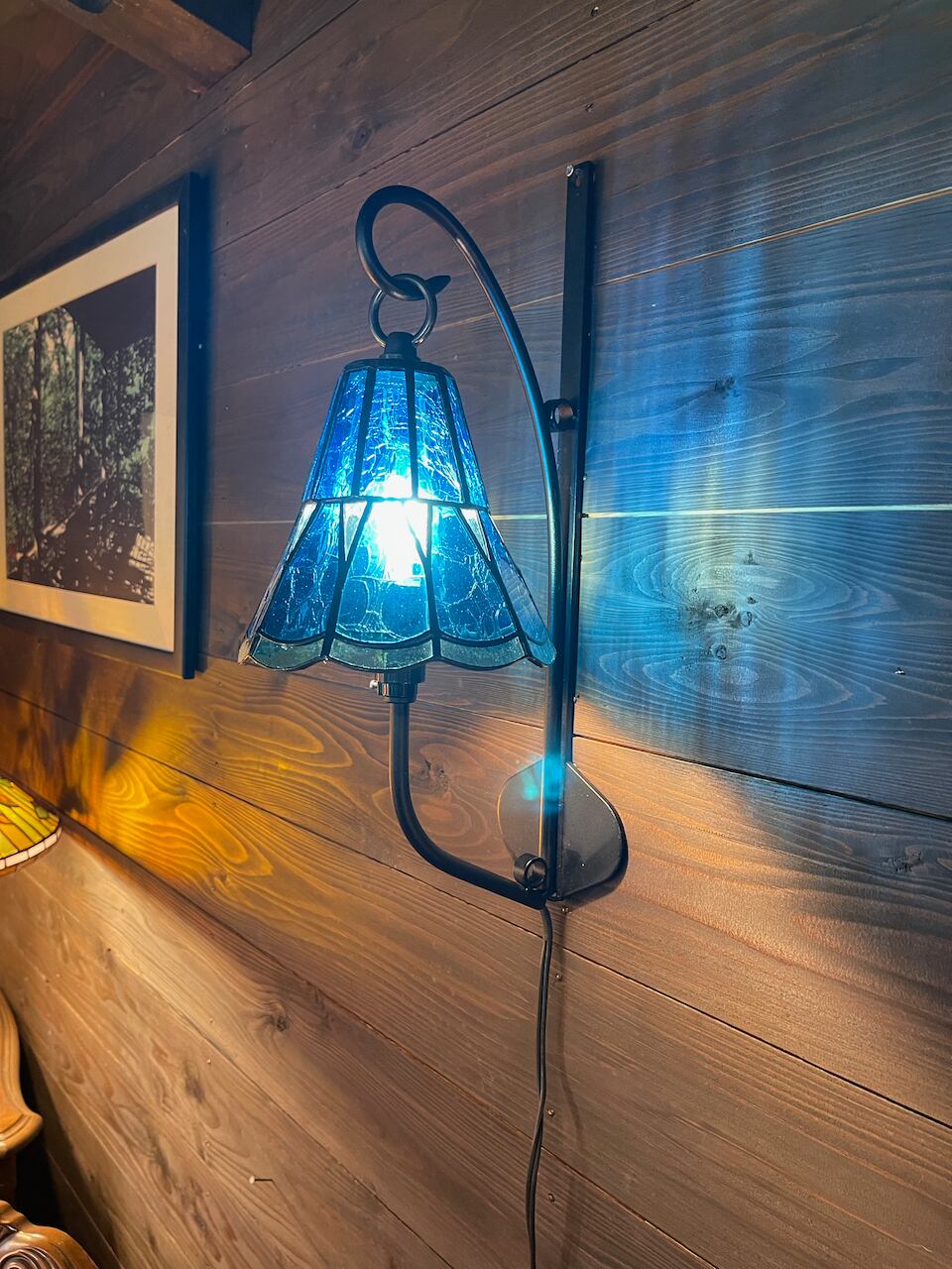 アイアンの壁灯に裾広がりのドレスを纏ったようなランプです。