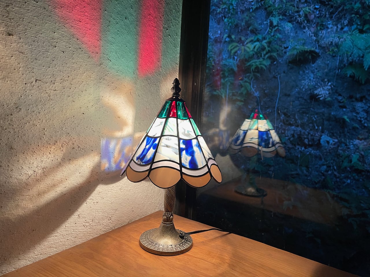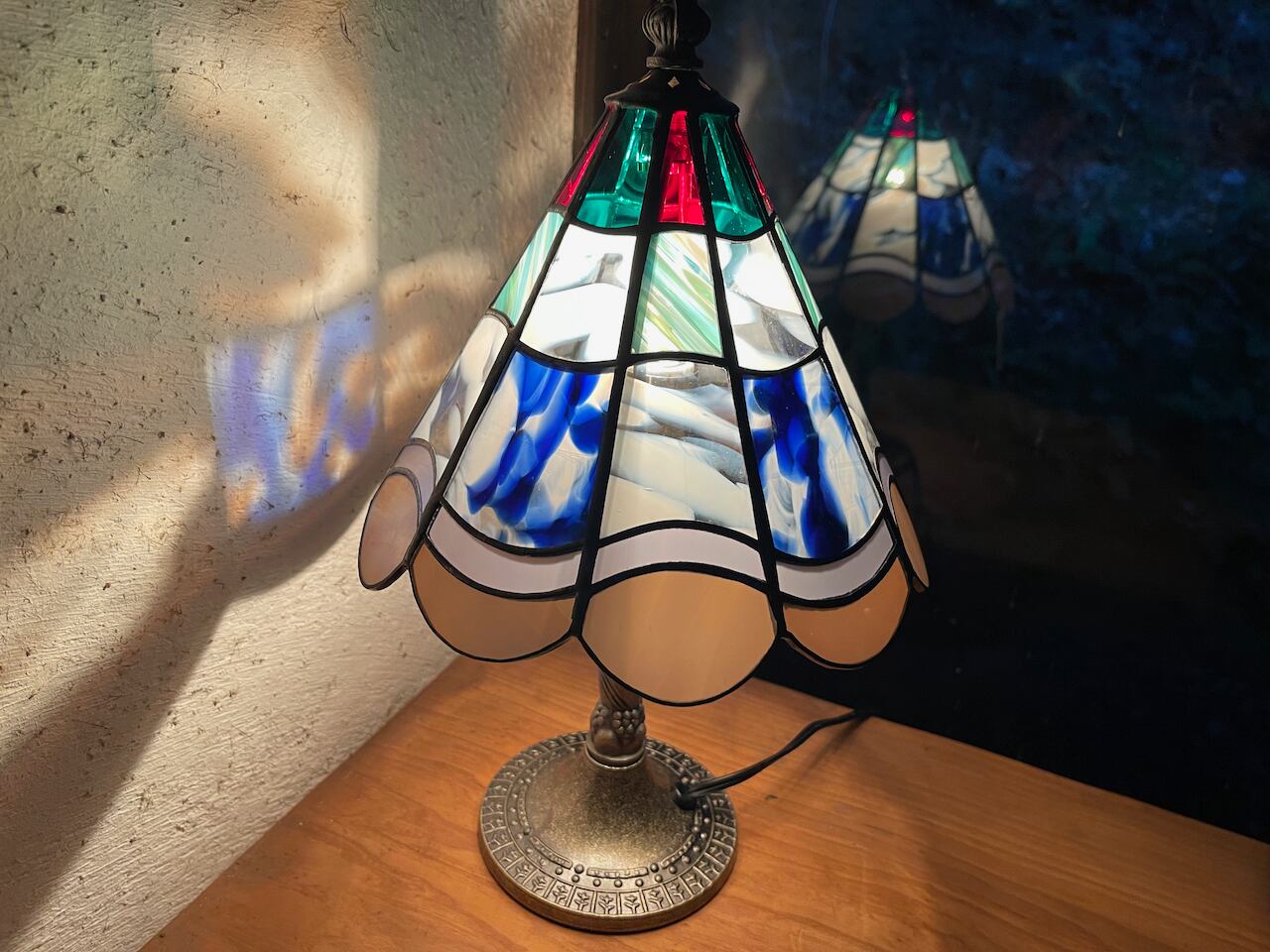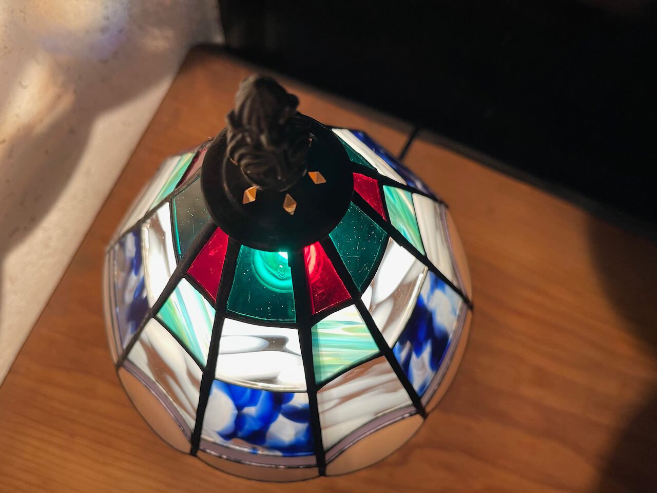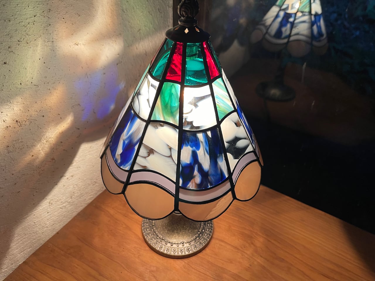 キルトのようにカラーガラスを組み合わせた人気のランプです。