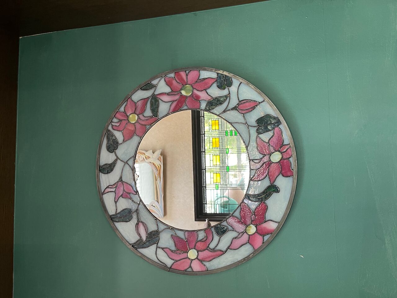 雑貨 > 壁掛ミラー > 壁掛ミラー デザイン・柄 > 花・植物 価格帯 >30,000円〜49,999円 ---------- 大きめのミラーを作りました。 ビビッドなピンクで可憐な鉄線花を描きました。どこに飾っても華やかで心が踊ります。 リビングや寝室、洗面所の壁に豪華でミラー面も直径27cmあります。 新築祝い、結婚のお祝いなど喜んでいただける贈り物に。 サイズ/直径460mm 付属品/壁掛けフック